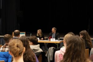 Vor der Zertifikatsübergabe nutzten die geladenen Schülerinnen und Schüler noch die Gelegenheit, mit dem Generalkonsul über vielfältige Themen ins Gespräch zu kommen, unter anderem über die Wege in den diplomatischen Dienst, die Bedeutung der deutsch-französischen Freundschaft und ihre Zukunft sowie über Karrieremöglichkeiten, die sich einem durch die französische Sprache eröffnen.